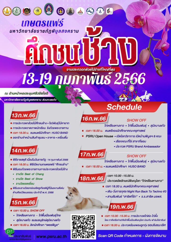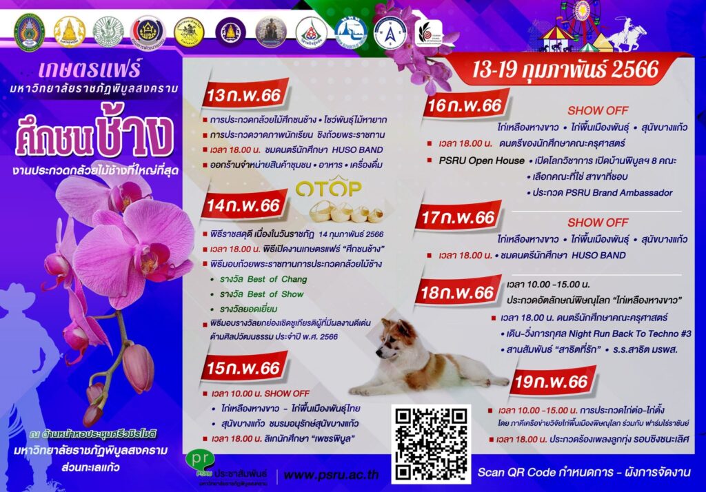 สภาอุตสาหกรรมท่องเที่ยวจังหวัดพิษณุโลก และ สมาคมสหพันธ์ท่องเที่ยวภาคเหนือจังหวัดพิษณุโลก เชิญเที่ยวงาน เกษตรแฟร์ “ศึกช้างชนช้าง” ระหว่างวันที่ 13-19 กุมภาพันธ์ 2566 ที่มหาวิทยาลัยราชภัฏพิบูลสงคราม ส่วนทะเลแก้ว มีกิจกรรมมากมาย