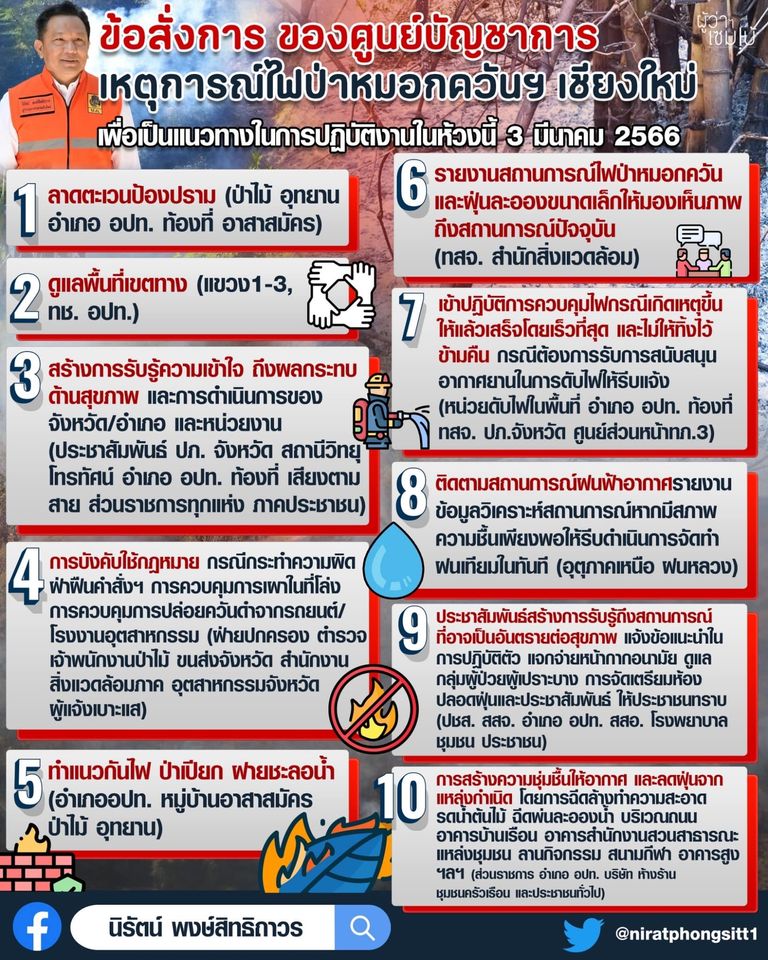 ข้อสั่งการของศูนย์บัญชาการเหตุการณ์ไฟป่าหมอกควันฯ เชียงใหม่เพื่อเป็นแนวทางในการปฏิบัติงานในห้วงนี้ คำสั่ง นายนิรัตน์ พงษ์สิทธิถาวรผู้ว่าราชการจังหวัดเชียงใหม่ ลงวันที่ 3 มีนาคม 2566 Post navigation งานประเพณีแห่มาลัยข้าวตอก ประจำปี 2566 กำหนดจัดขึ้นระหว่างวันที่ 1 -5 มีนาคม 2566 ณ บริเวณหน้าที่ว่าการอำเภอมหาชนะชัย จังหวัดยโสธรวันที่ 5 มีนาคม วันนักข่าว สมาคมหนังสือพิมพ์ภาคเหนือ รวมกันทำบุญให้กับ สื่อมวลชนที่ล่วงลับ