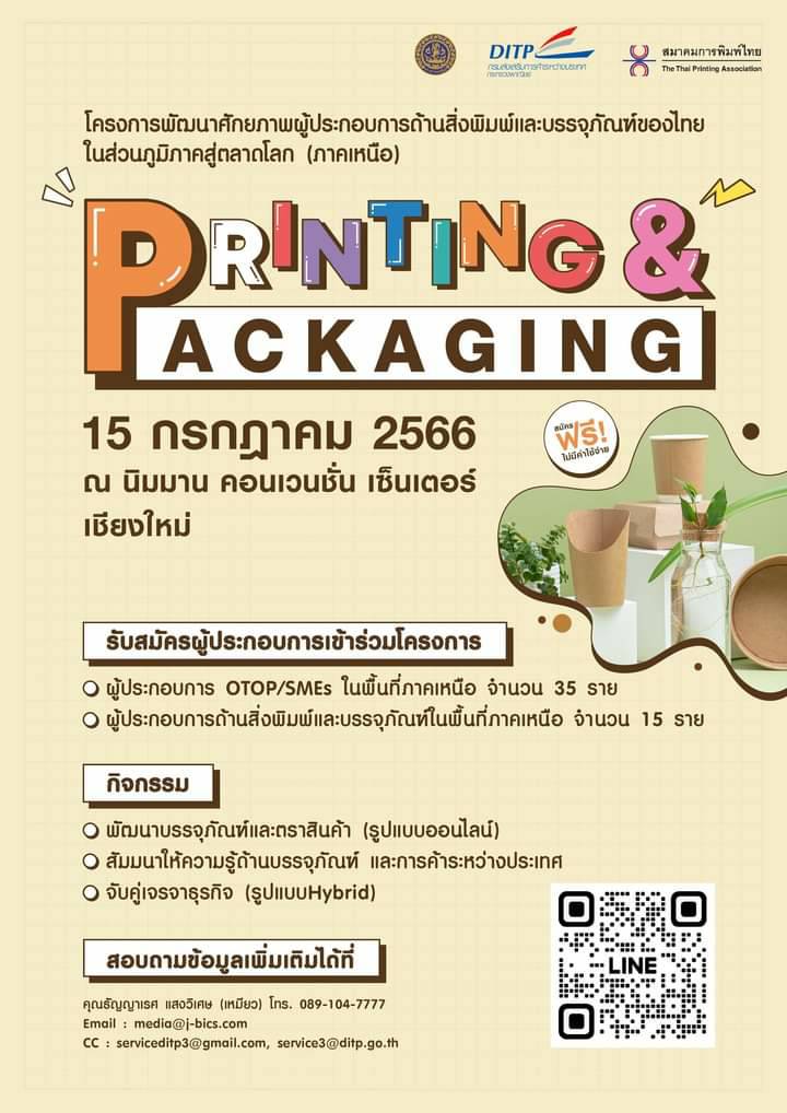 📣กรมส่งเสริมการค้าระหว่างประเทศ เปิดรับสมัครผู้ประกอบการ OTOP/SMEs และผู้ประกอบการด้านสิ่งพิมพ์และบรรจุภัณฑ์ ในพื้นที่ภาคเหนือ เข้าร่วมโครงการพัฒนาศักยภาพผู้ประกอบการด้านสิ่งพิมพ์และบรรจุภัณฑ์ของไทยในส่วนภูมิภาคสู่ตลาดโลก (ภาคเหนือ)