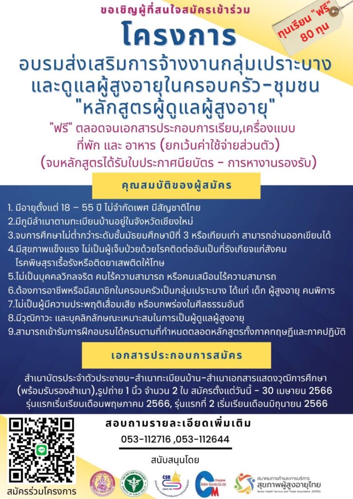 👉เปิดรับสมัครผู้ที่สนใจเรียนหลักสูตรผู้ดูผู้สูงอายุ (NA) เรียน “ฟรี” จำนวน 80 ทุน