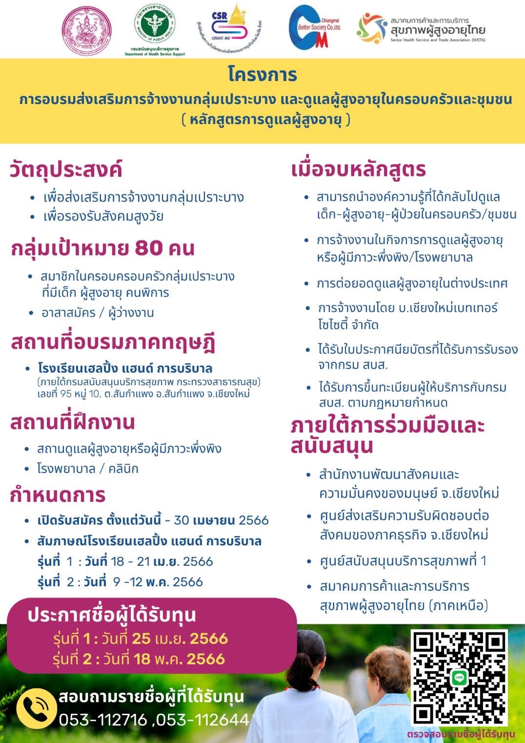 สำนักงานพัฒนาสังคมและความมั่นคงของมนุษย์ จ.เชียงใหม่ ร่วมกับ ศูนย์ส่งเสริมความรับผิดชอบต่อสังคมของภาคธุรกิจ จ.เชียงใหม่ ,ศูนย์สนับสนุนบริการสุขภาพที่ 1 ,สมาคมการค้าและการบริการสุขภาพผู้สูงอายุไทย(ภาคเหนือ)
