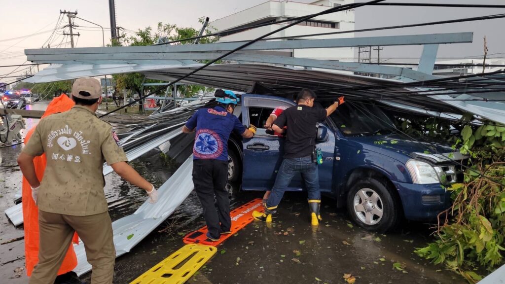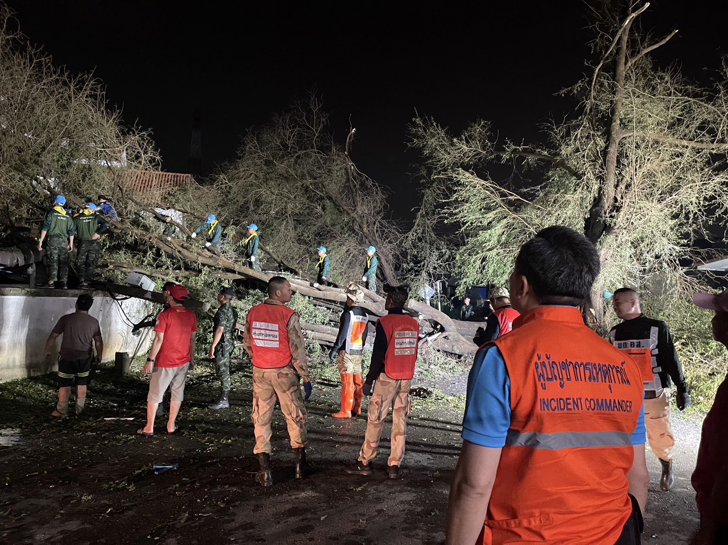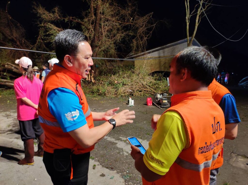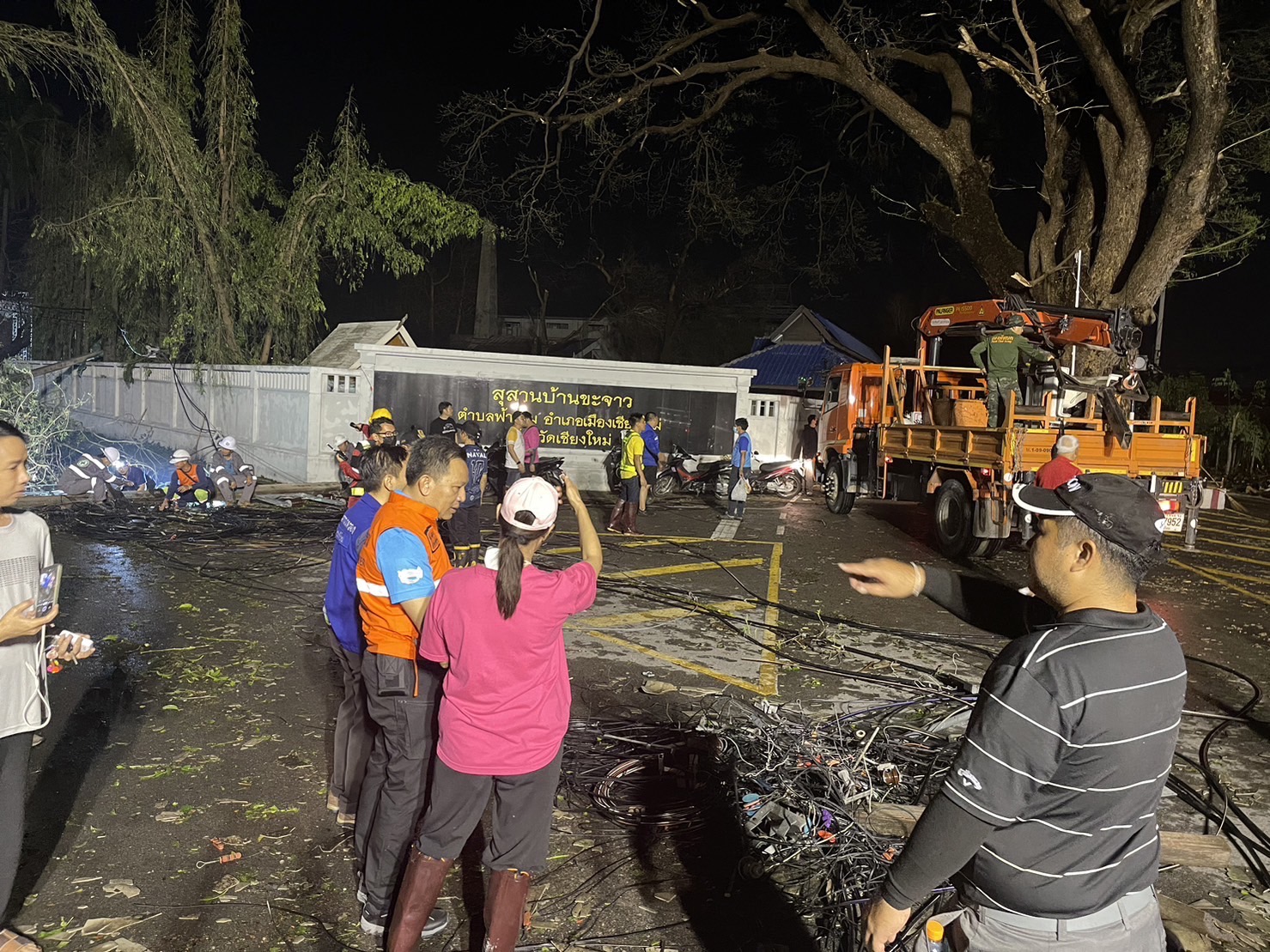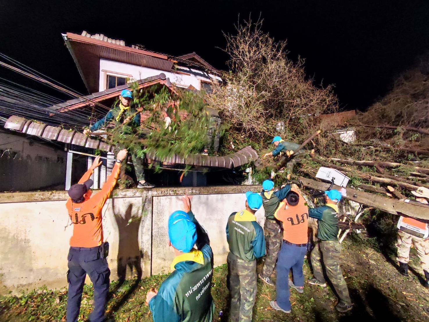 และพืชผลทางการเกษตรได้รับความเสียหาย เบื้องต้น อำาเภอเมืองเชียงใหม่ ได้ลงพื้นที่และประสานองค์กร ปกครองส่วนท้องถิ่น สำรวจความเสียหายและช่วยเหลือราษฎรที่ได้รับผลกระทบ ต.ฟ้าฮ่าม เสาไฟฟ้าหักโค่นทับบ้านเรือนราษฎร กีดขวางการจราจร ทำให้ไฟฟ้าดับเป็นบริเวณกว้าง ปัจจุบัน