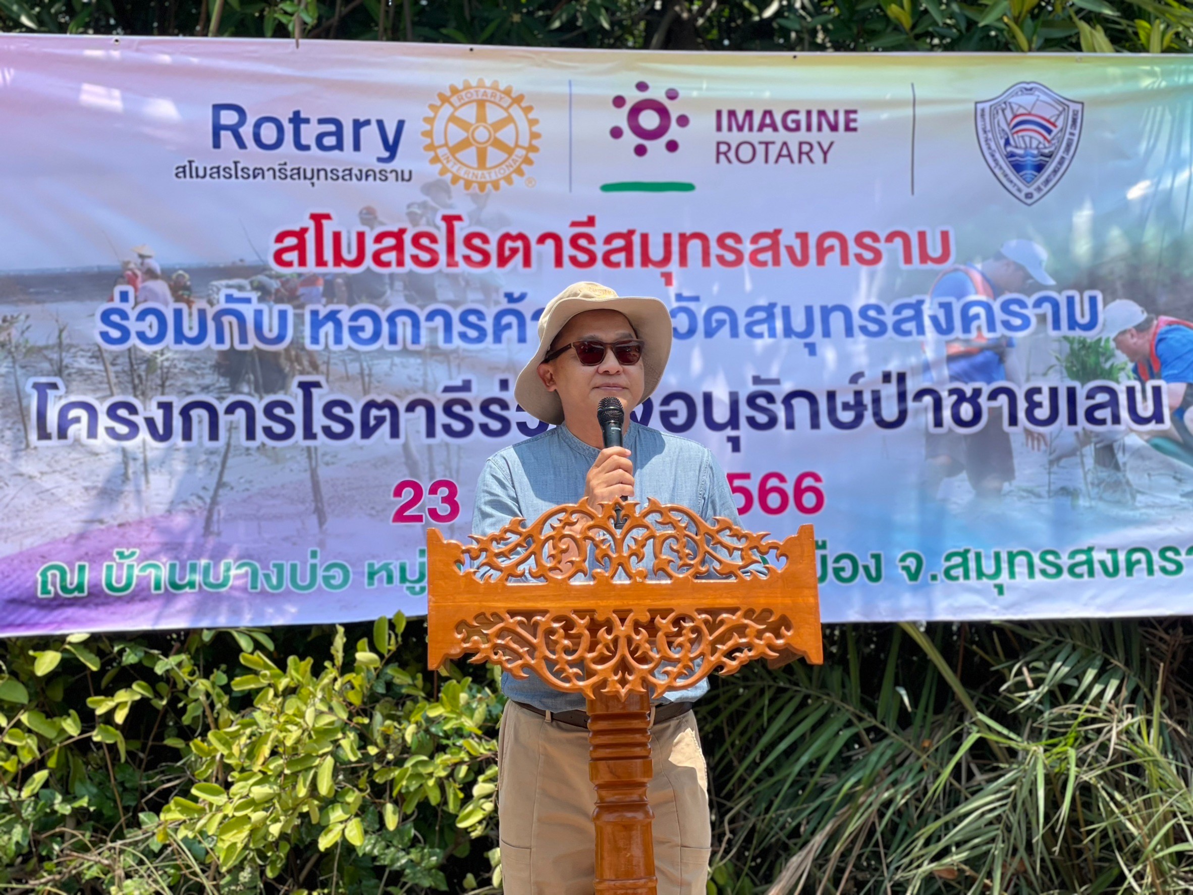 นายอรรถพล วรรณกิจ ผอ.ททท.สมุทรสงครามเป็นประธาน กล่าวเปิดโครงการ ‘ โรตารีร่วมใจอนุรักษ์ป่าชายเลน’ณ ศูนย์เรียนรู้การอนุรักษ์ป่าชายเลน (โรงเรียนธรรมชาติป่าชายเลน) หมู่ 10 ต.บางแก้ว อ.เมืองฯ จ.สมุทรสงคราม