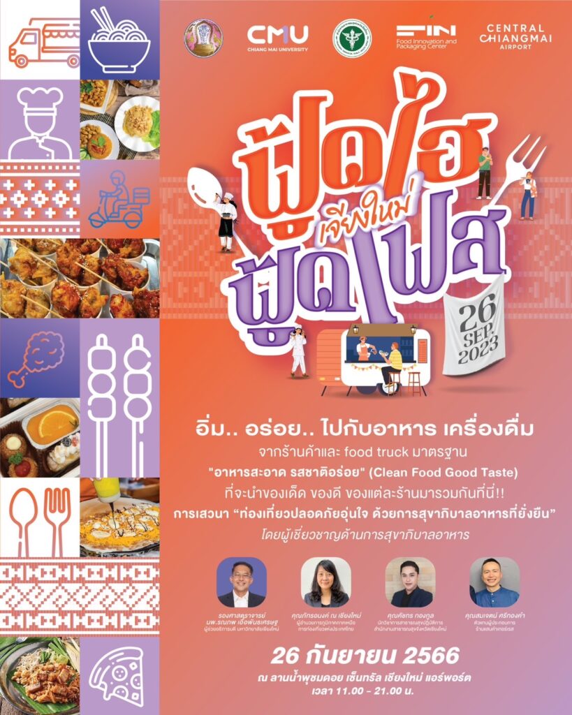 โดย ศูนย์นวัตกรรมอาหารและบรรจุภัณฑ์ มหาวิทยาลัยเชียงใหม่ ที่รวบรวมร้านค้าและ food truck มาตรฐาน “อาหารสะอาด รสชาติอร่อย” กว่า 20 ร้านค้า
