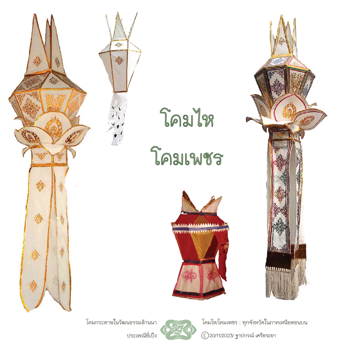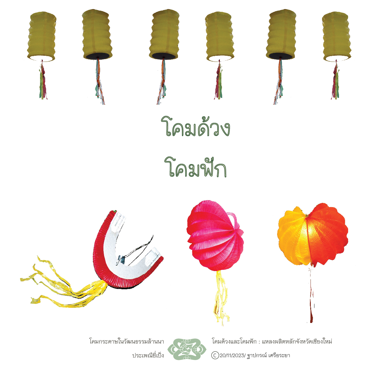 วันนี้จึงขอนำเสนอรูปแบบโคมกระดาษที่ปรากฏในวัฒนธรรมล้านนา ซึ่งเป็นข้อมูลที่ได้จากการศึกษารวบรวมตั้งแต่ในปี 2548 นำมาเสนออีกครั้ง เพื่อเป็นประโยชน์ต่อการสร้างสรรค์โคมกระดาษในเวลาอันใกล้นี้