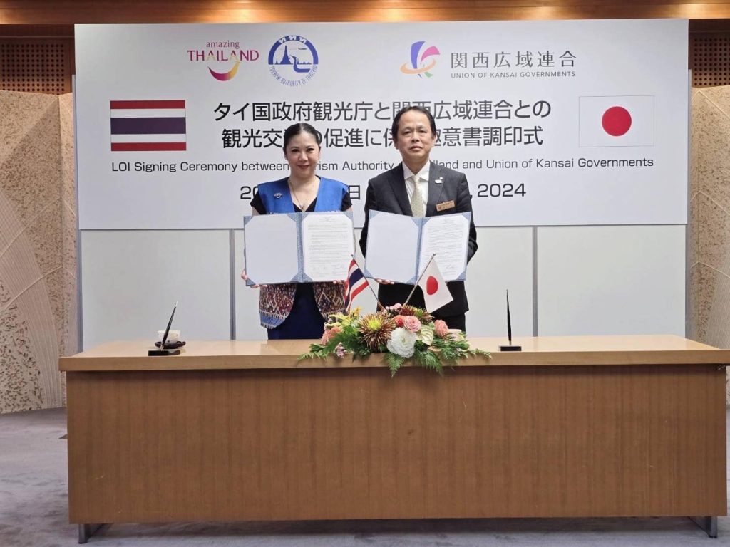 ททท. ลงนาม LOI ว่าด้วยความร่วมมือด้านการท่องเที่ยว ระหว่าง ททท. และ ภูมิภาคคันไซ ประเทศญี่ปุ่น เพื่อส่งเสริมและแลกเปลี่ยนการท่องเที่ยวเชิงกีฬา-การศึกษา และวัฒนธรรม ในกลุ่มเยาวชนร่วมกัน