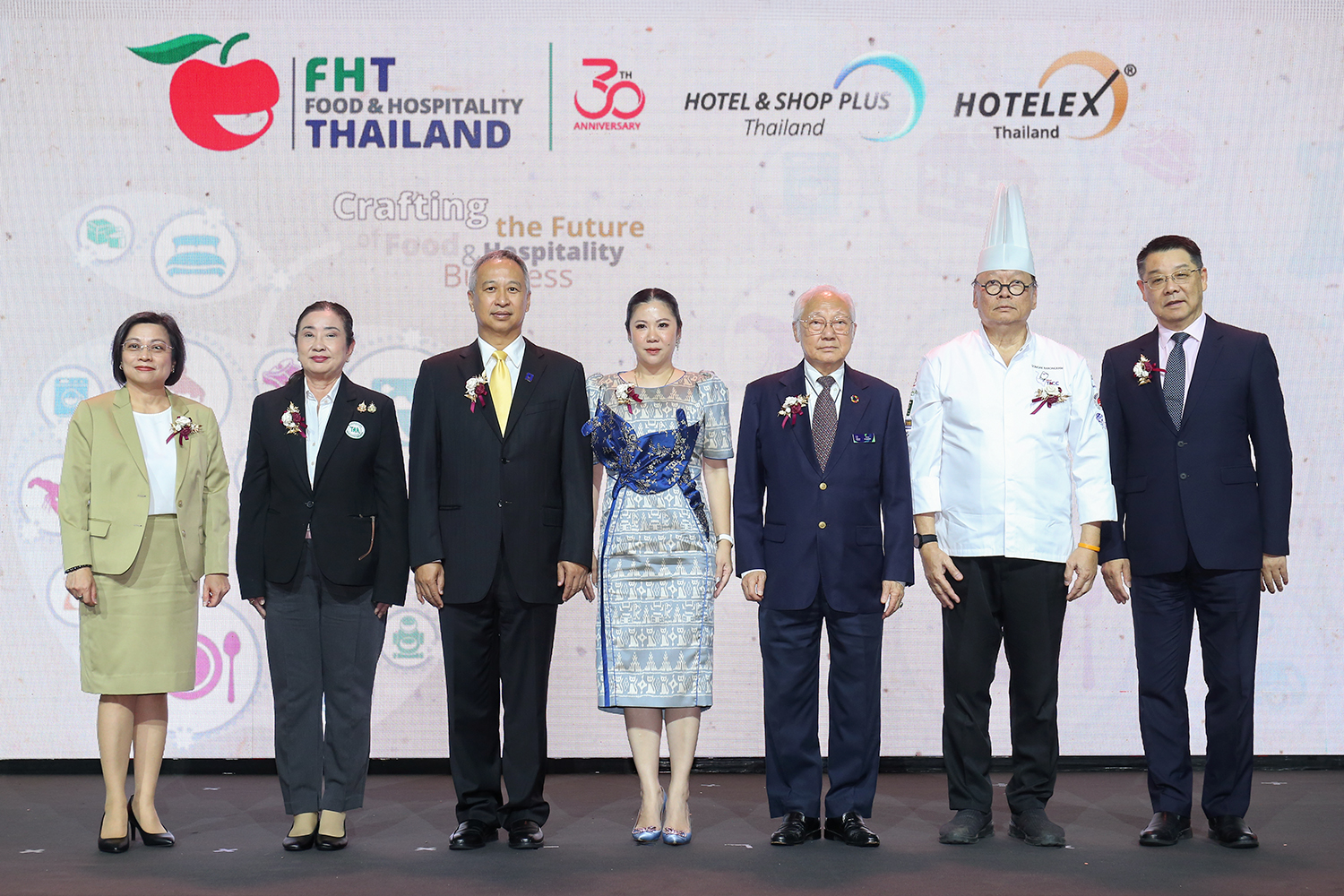 นางสาวฐาปนีย์ เกียรติไพบูลย์ ผู้ว่าการการท่องเที่ยวแห่งประเทศไทย (ททท.) (คนกลาง) เป็นประธานในพิธีเปิดงาน Food & Hospitality Thailand 2024 อย่างเป็นทางการ โดยมีนายมนู เลียวไพโรจน์ บริษัท อินฟาร์มา มาร์เก็ตส์ ประเทศไทย (ที่สามจากขวา) ผู้จัดงานฯ และนางมิลลิเซนต์ ครุซ – ปาเรเดส เอกอัครราชทูตฟิลิปปินส์ประจำประเทศไทย (คนแรกซ้าย) นายเทียนประสิทธิ์ ไชยภัทรานันท์ นายกสมาคมโรงแรมไทย (ที่สามจากซ้าย) นางฐนิวรรณ กุลมงคล นายกสมาคมภัตตาคารไทย (ที่สองจากซ้าย) นายสมศักดิ์ รารองคำ นายกสมาคมเชฟประเทศไทย (ที่สองจากขวา) และ นายชาง เอ็กซ์คิว กรรมการผู้จัดการ Sinoexpo Informa Markets ผู้จัดงาน Hotel & Shop Thailand และ Hotelex Thailand (คนแรกขวา) ร่วมในพิธีเปิดงาน เมื่อเร็วๆ นี้