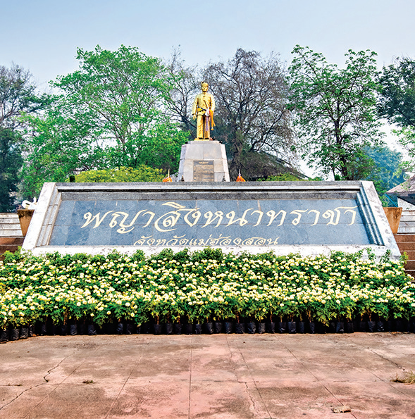 “แสงแห่งคุโณปการ” ณ อนุสาวรีย์พญาสิงหนาทราชา อนุสาวรีย์ของเจ้าเมืององค์แรกผู้สร้างเมืองแม่ฮ่องสอน รอบบริเวณได้รับการประดับตกแต่งสวนอย่างสวยงาม เพื่อให้ประชาชนทั่วไป ตลอดจนลูกหลานชาวแม่ฮ่องสอนเข้ามากราบสักการะ นอกจากนี้ยังเป็นจุดที่คุณสามารถมองเห็นพระธาตุดอยกองมูได้อย่างถนัดตาอีกด้วย