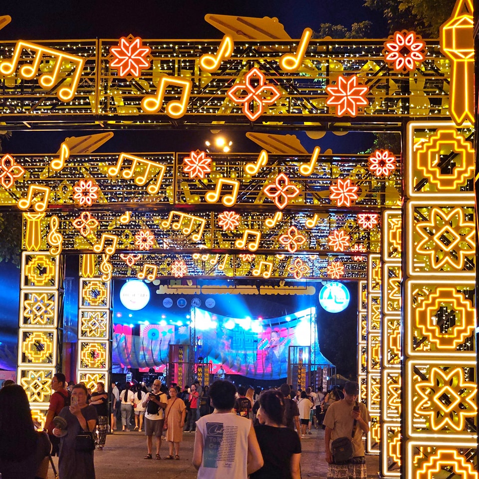 HOP Chiangmai Art & Music Festival เดินเล่นถ่ายรูปชมแสงสีสวยๆ มีเสียงเสียงดนตรีขับกล่อม ในงานมหกรรม เสน่ห์ไทย เชียงใหม่