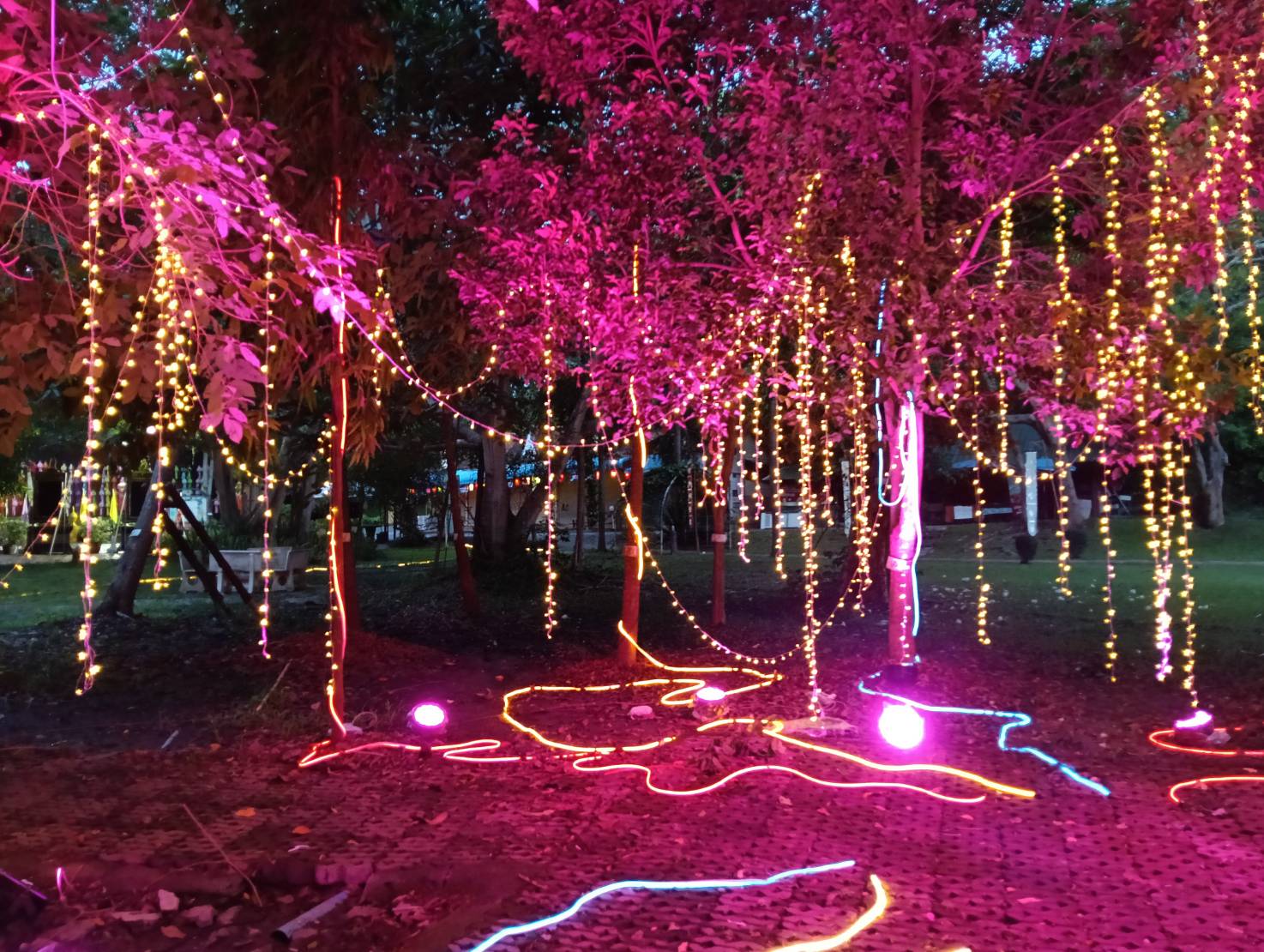 10) นิทานแสง การย้อมแสงสีชมพู และประดับประดาไฟกลุ่มต้นไม้หลากหลายรูปแบบ