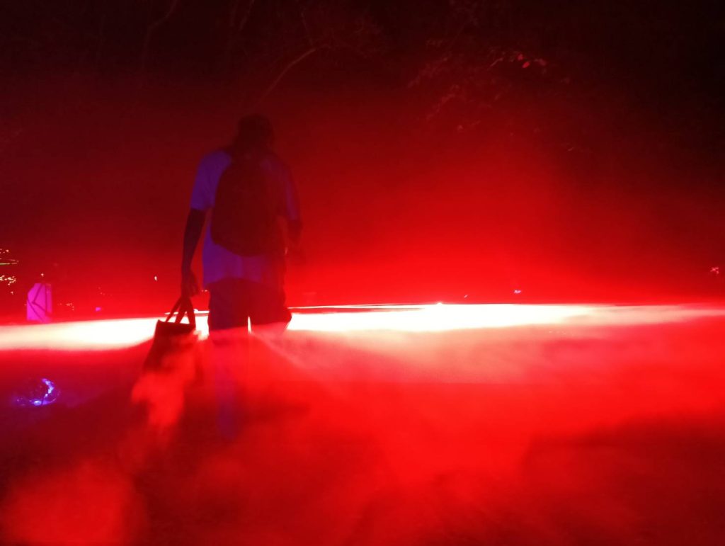 3) แสงธารา LASER Swamp บนพื้นถนน