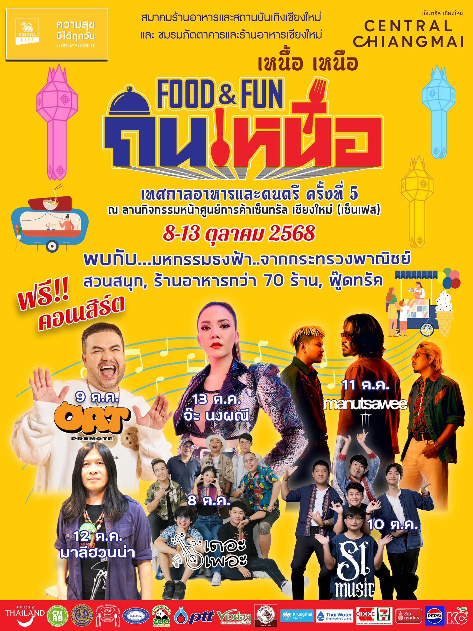 ครบครันครบรสทั้งความอร่อยและความบันเทิงเช่นนี้ ไม่ควรพลาดสุดๆ ย้ำอีกครั้งงานจัดตั้งแต่ วันที่ 8 – 13 ตุลาคม 2568 ณ ลานกิจกรรมด้านหน้า เซ็นทรัล เชียงใหม่ (เซ็นเฟสฯ)