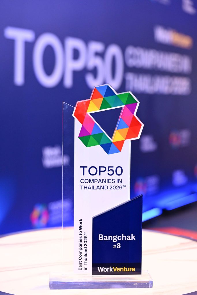บางจากฯ ขึ้นแท่นอันดับ 8 องค์กรที่คนรุ่นใหม่อยากร่วมงานด้วยมากที่สุด จาก “WorkVenture Top 50 Companies in Thailand 2026” ตามผลสำรวจกว่าหมื่นคนของ WorkVenture