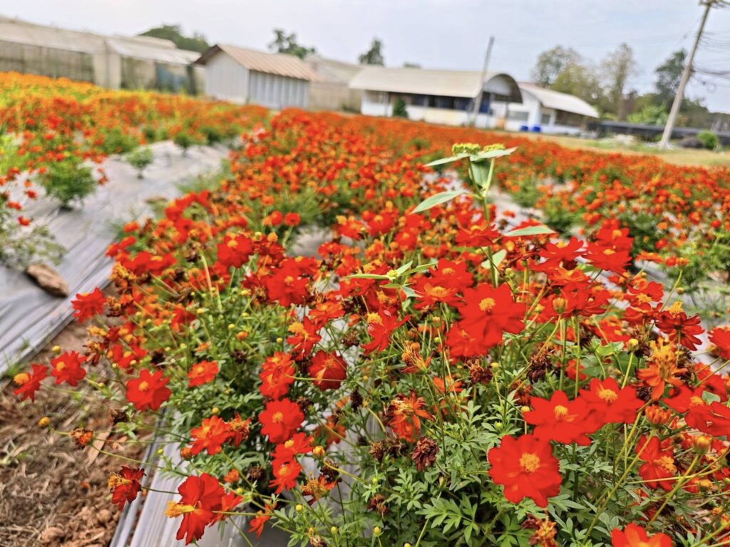 มาชมความงามของดาวเรือง 5 สายพันธุ์ และคอสมอสแดงสุดปัง