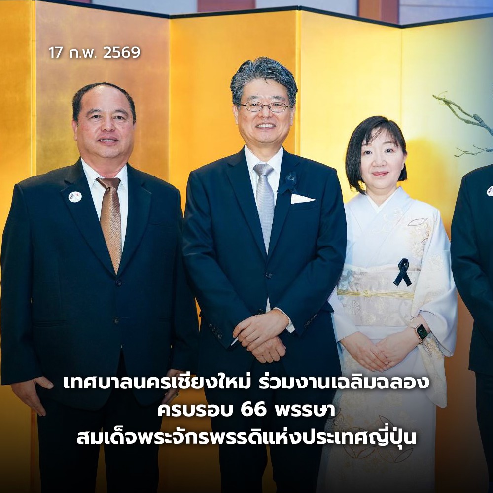 เมื่อค่ำวันที่ 17 ก.พ. 69 ณ ห้องสุเทพฮอลล์ (Suthep Hall) ชั้น 4 โรงแรมเชียงใหม่แมริออท (Chiang Mai Marriott Hotel) นายฮาราดะ มาซารุ (Mr. HARADA Masaru) กงสุลใหญ่ญี่ปุ่น ณ นครเชียงใหม่ พร้อมด้วยภริยา เป็นประธานจัดงานเลี้ยงรับรองเนื่องในโอกาสวันชาติญี่ปุ่น ประจำปี 2569 และเพื่อเป็นการเฉลิมฉลองวาระมหามงคล เนื่องในวันคล้ายวันพระราชสมภพ ครบ 66 พรรษา ของสมเด็จพระจักรพรรดิแห่งประเทศญี่ปุ่น (สมเด็จพระจักรพรรดินารูฮิโตะ)