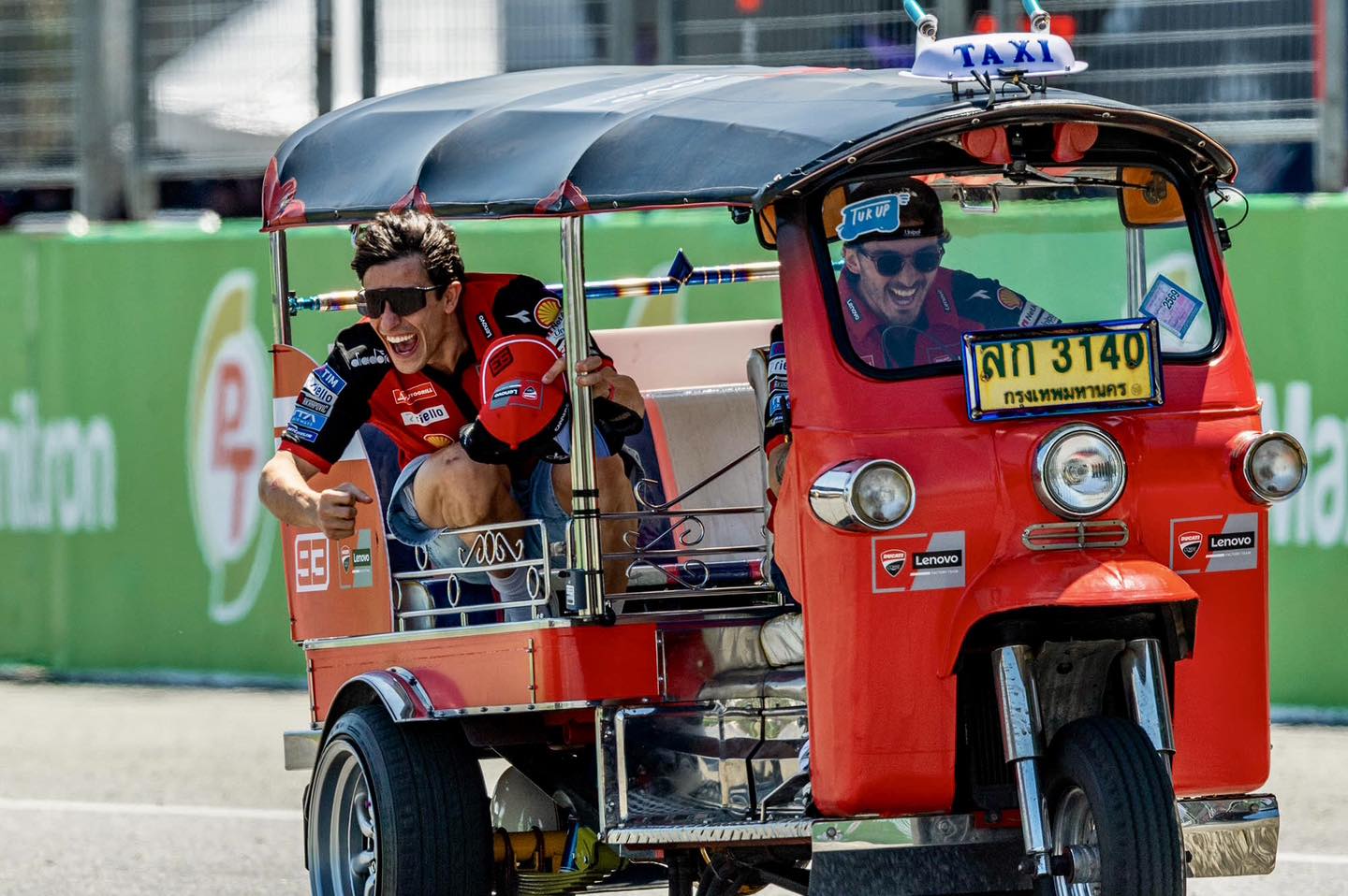 ฉีกทุกกฎการทำ Rider Parade แบบเดิมๆ ครับ! ในศึก PT Grand Prix of Thailand 2026 ฝ่ายจัดงานสร้างเซอร์ไพรส์ด้วยการเปลี่ยนจากรถบรรทุกทักทายแฟนๆ มาเป็นการจับคู่ 22 นักบิดพรีเมียร์คลาสลงควบ “รถตุ๊กตุ๊ก” ดวลความเร็วกันรอบสนามช้าง อินเตอร์เนชั่นแนล เซอร์กิต นำทัพโดยซูเปอร์สตาร์อย่าง Marc Marquez, Pecco Bagnaia และ Jorge Martin ที่สลัดมาดนักบิดสุดขรึมมาสวมวิญญาณสารถีสามล้อเครื่อง เรียกเสียงฮือฮาจากแฟนๆ บนสแตนด์ได้แบบถล่มทลาย
